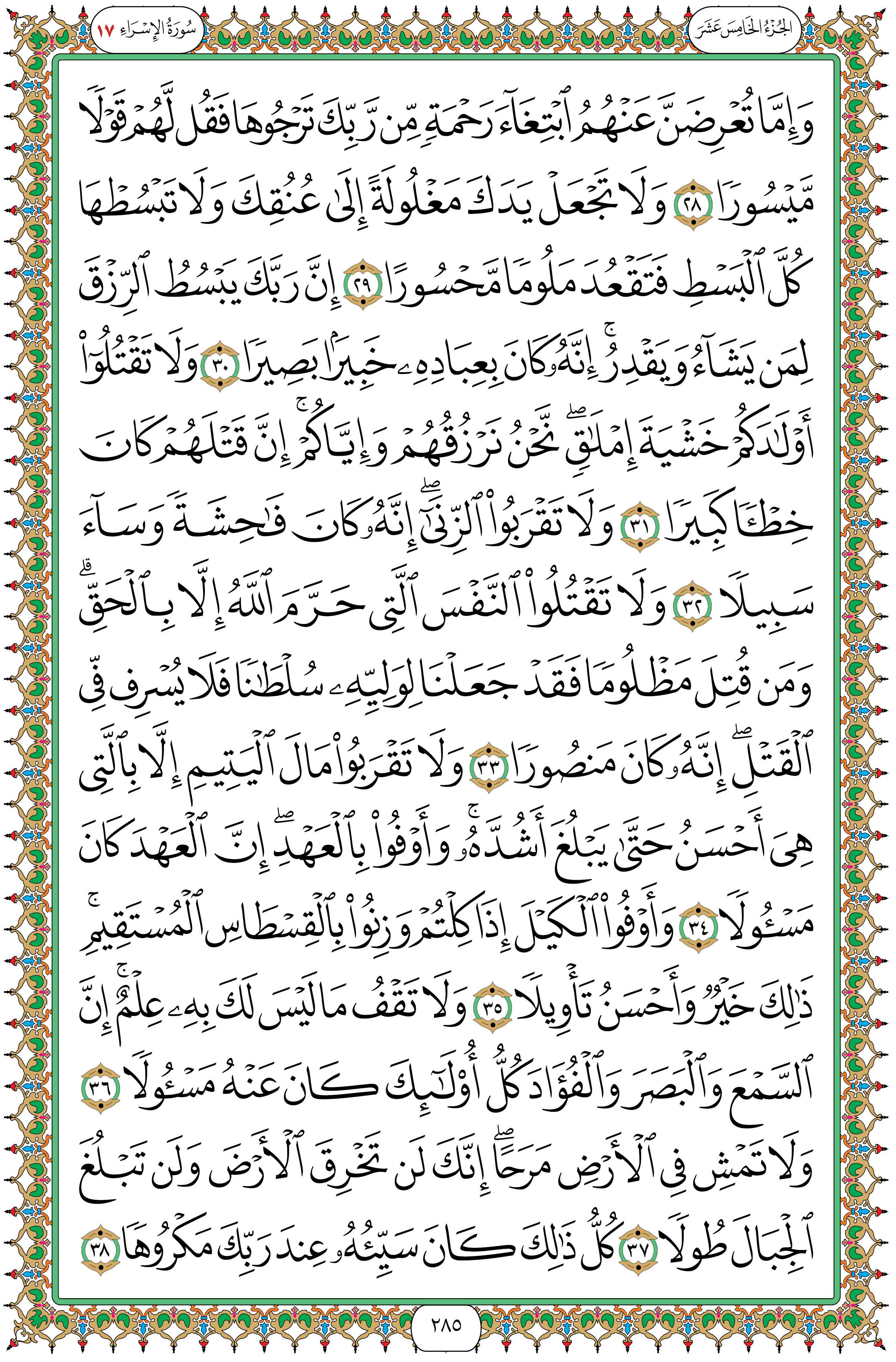 وَلَا تَجۡعَلۡ يَدَكَ مَغۡلُولَةً إِلَىٰ عُنُقِكَ وَلَا تَبۡسُطۡهَا كُلَّ ٱلۡبَسۡطِ فَتَقۡعُدَ مَلُومٗا مَّحۡسُورًا ٢٩